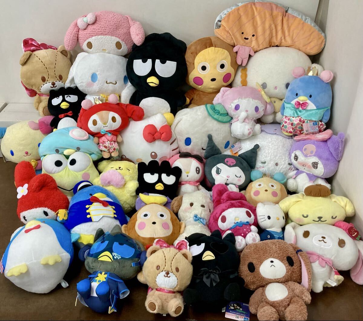 > RR735) サンリオキャラクターズ ぬいぐるみ 大量 まとめ売り SMILES プライズ こぎみゅん ばつ丸 けろっぴ タキシードサム もんきち クロミ