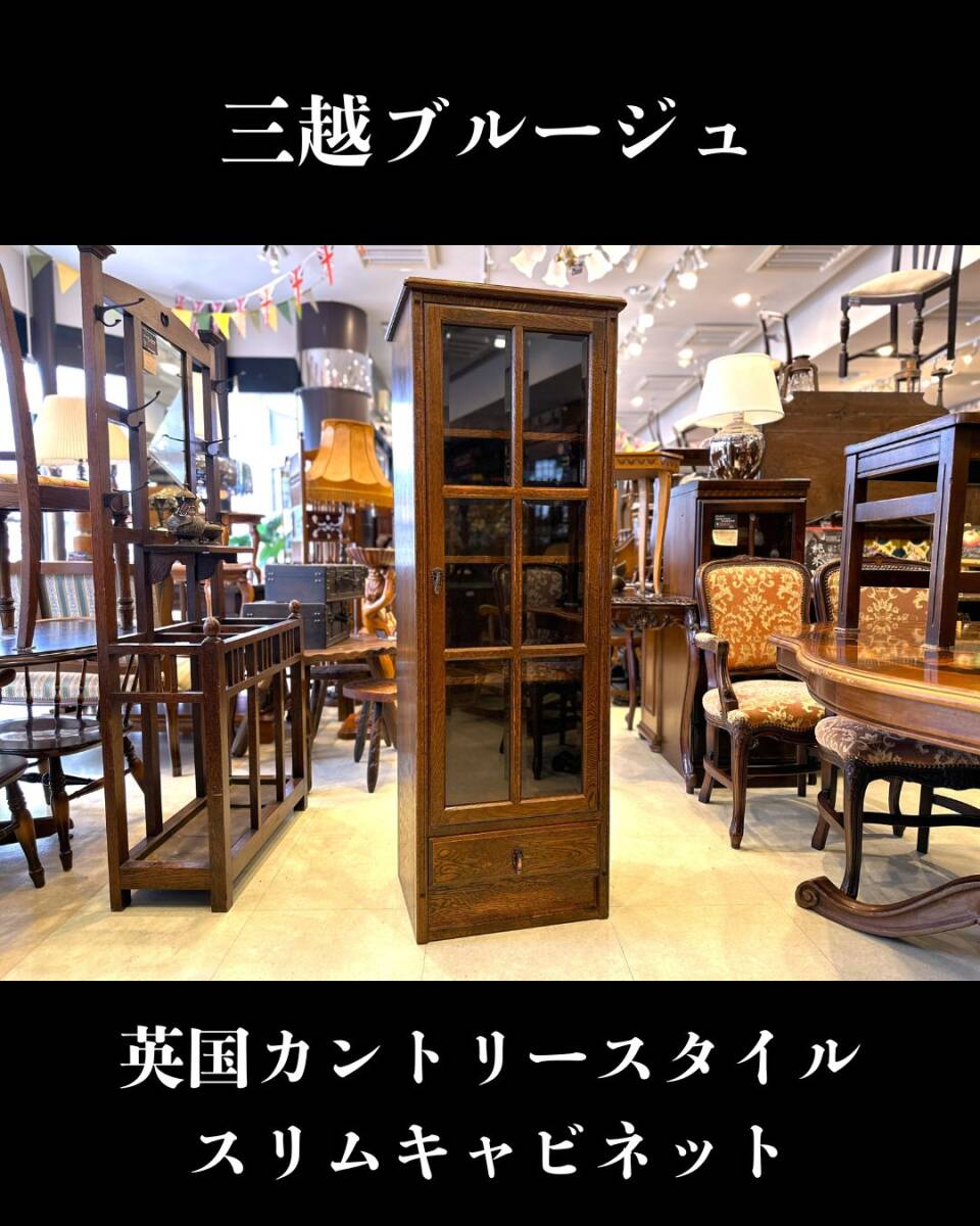 - 5J15 三越ブルージュ ブリティッシュカントリースタイル スリムコレクションキャビネット 食器棚 本棚
