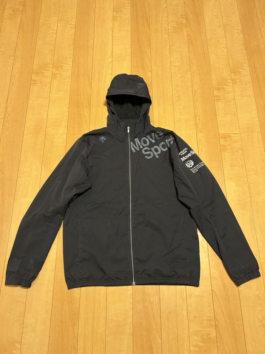 > ☆デサント・ムーブスポーツ 希少サイズXO.メンズ3L寸 裏地全面付.リップストップナイロンフルジップパーカジャケット BIGロゴ入 フード付