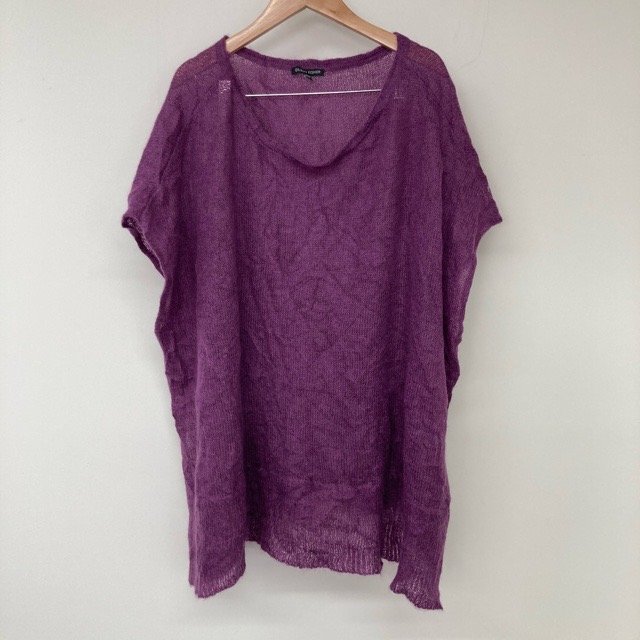 > B535 アイリーンフィッシャー M アメリカ古着 モヘア混 半袖 プルオーバー ニット パープル EILEEN FISHER レディース