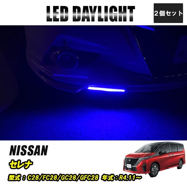 - セレナ C28 FC28 GC28 GFC28 LED デイライト 極細 埋め込み 改良版 フロントグリル バンパー 防水 30灯 ブルー 2P 汎用 昼間点灯