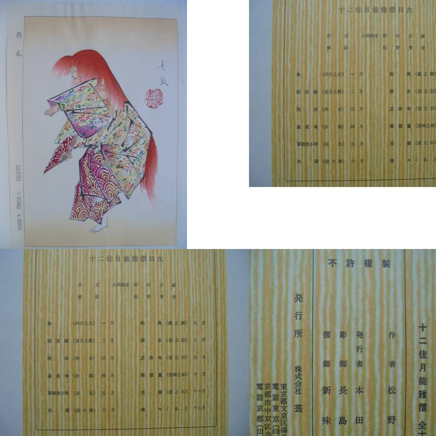 - 十二佳月能雅摺 十二枚 木版画 真作 松野奏風作 野村万蔵識 芸艸堂 函付 良品 7909 京都雲屋