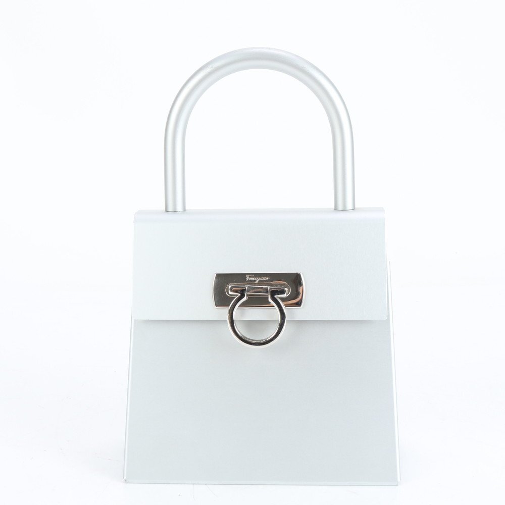 > 1円■極美品■サルヴァトーレフェラガモ■ガンチーニ アルミ トップハンドル ハンドバッグ トート シルバー レディース EUE CR5-9