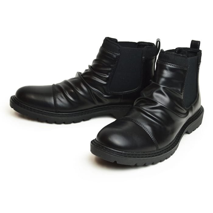 - 新品■28cm ドレープ メンズ ブーツ 防水 防滑 サイドゴア インヒール ビンテージ ヴィンテージ しわ加工 ショート丈 クッション 雨 靴