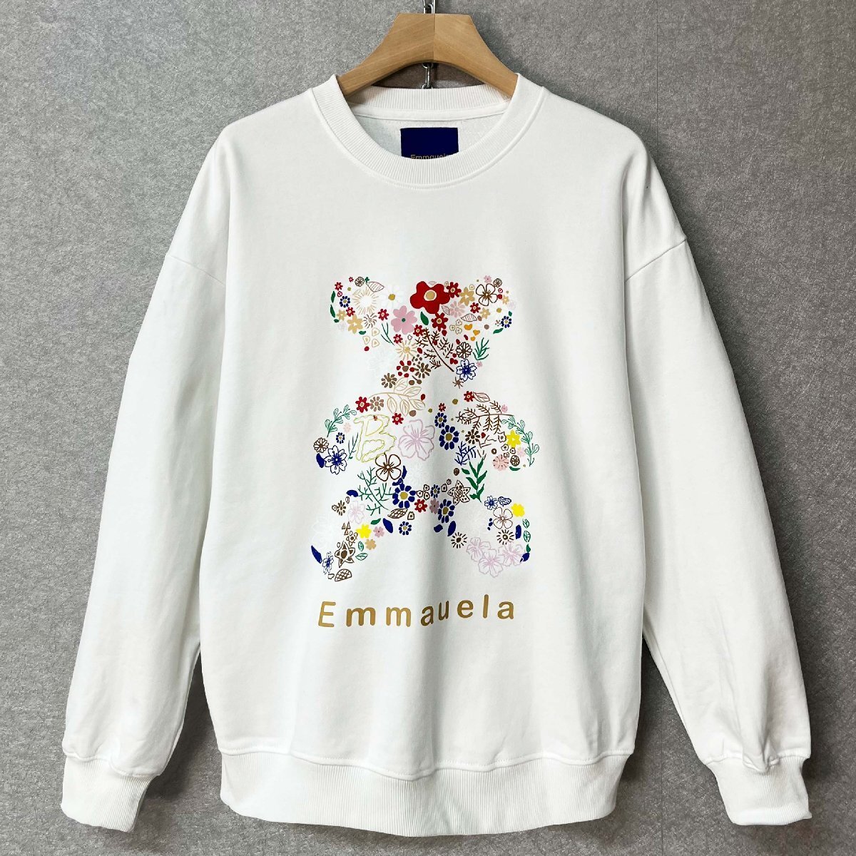 - 高級・トレーナー 定価4万◆Emmauela・イタリア・ミラノ発◆綿100% 柔らか スウェット クマ柄 花柄 可愛い 遊び心 トップス スウェット XL