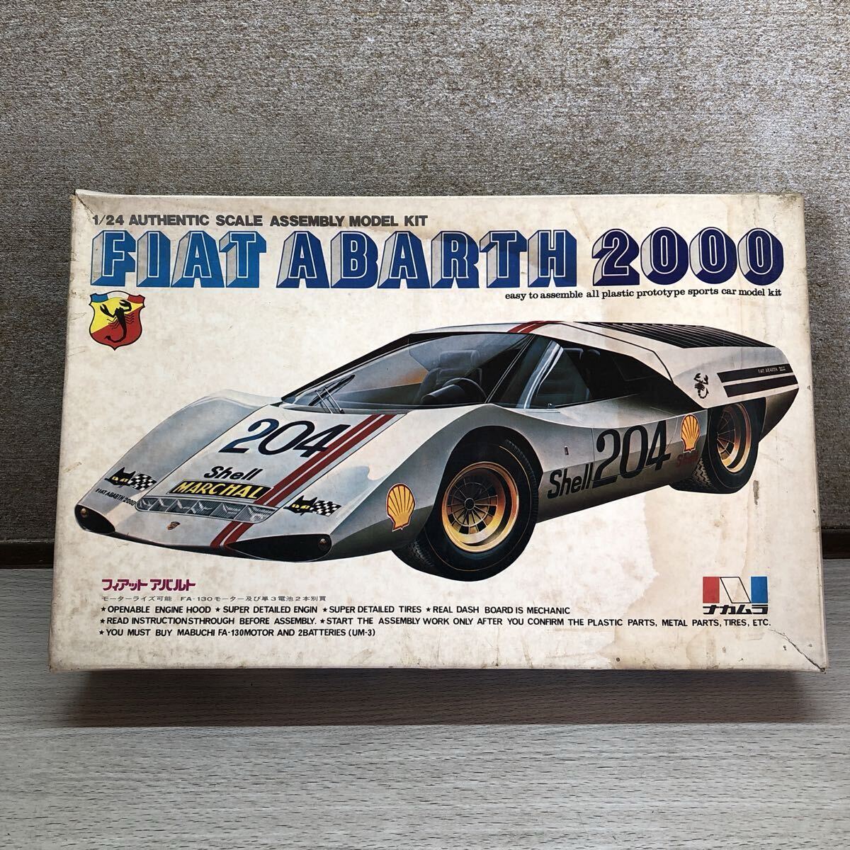 - 1円スタート ナカムラ 中村産業 NAKAMURA 1/24 フィアット アバルト FIAT ABARTH 2000 モーターライズ 絶版 当時物 未組立 プラモデル