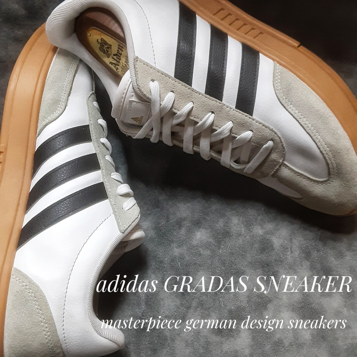 - 最値!希少23年製!名作ジャーマンデザイン!オールドガムソール×ブラックストライプ!アディダス グラダス高級スニーカー!ホワイト!白黒 27.5