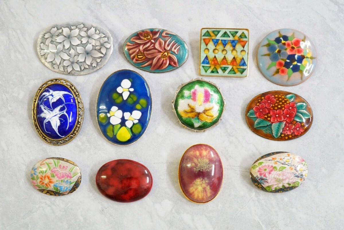 > C778 花 フラワーなど 七宝焼含む 陶器 焼き物 ブローチ 12点セット ヴィンテージ アクセサリー 大量 まとめて おまとめ まとめ売り
