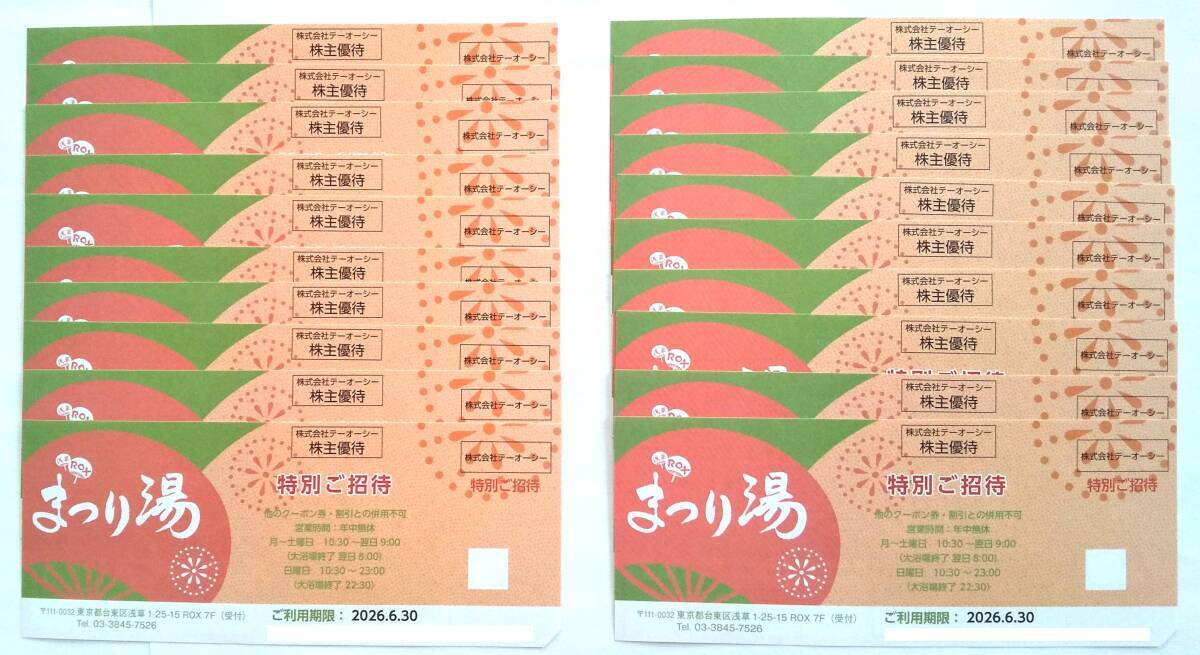 - 【送料無料】 テーオーシー株主優待 浅草ROXまつり湯 特別ご招待券 20枚