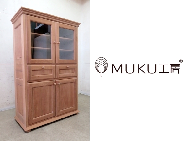 > ■P291■展示品■MUKU工房■旭川家具■北欧モダンデザイン■クラシック■キッチンボード■カップボード■食器棚■天然木■
