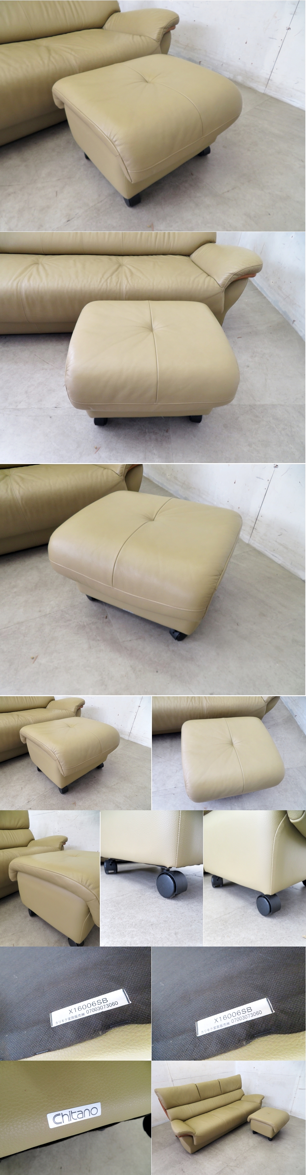 > ■P280■美品■カリモク/karimoku■チターノ/Chitano■牛本革■オーク材■スツール■オットマン■X16■モダン■キャスター付き■