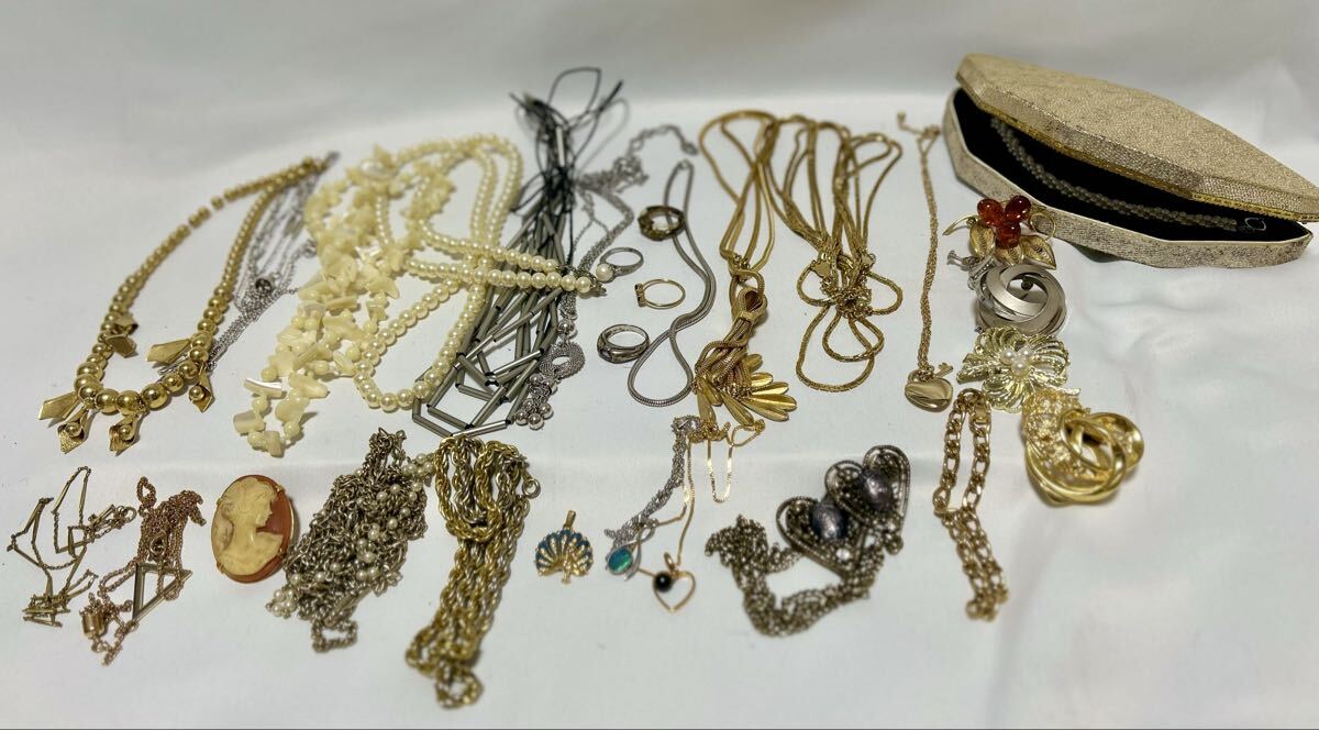 > アクセサリー まとめ ネックレス 指輪 SILVER 925 パール調 ヴィンテージ 昭和レトロ 混在整理 仕分け前 リメイク素材 ペンダント ブローチ