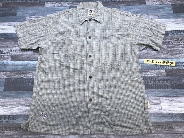 - SERENO メンズ チェック コットン 半袖シャツ M 緑青