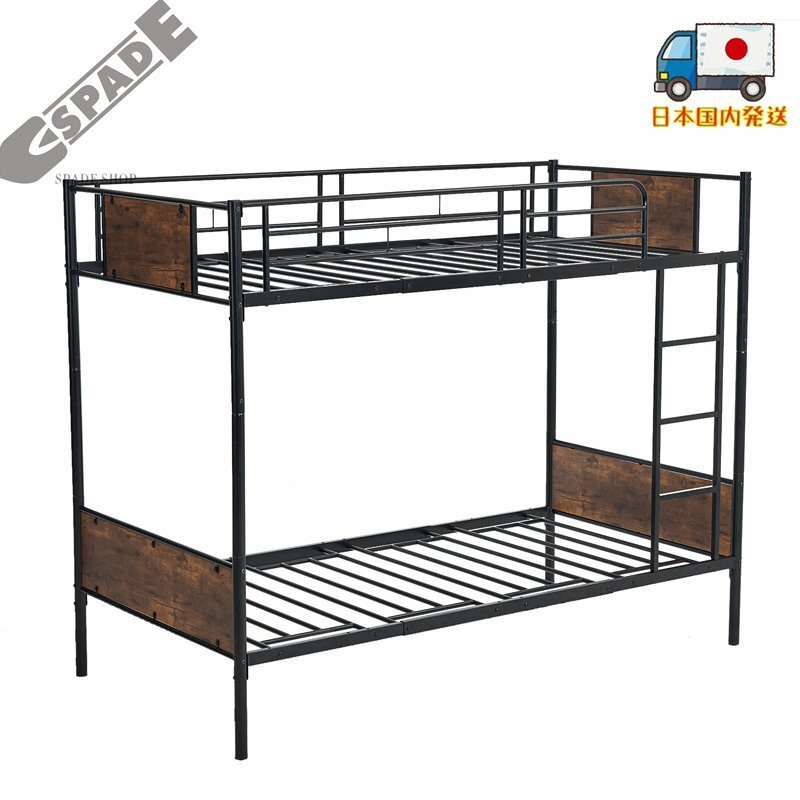 - 【国内発送】ブラック二段ベッド シングルベッド パイプベッド シングル 木 収納 北欧風 子供部屋 スチール 耐震 ベッド SDG【2色選択可】