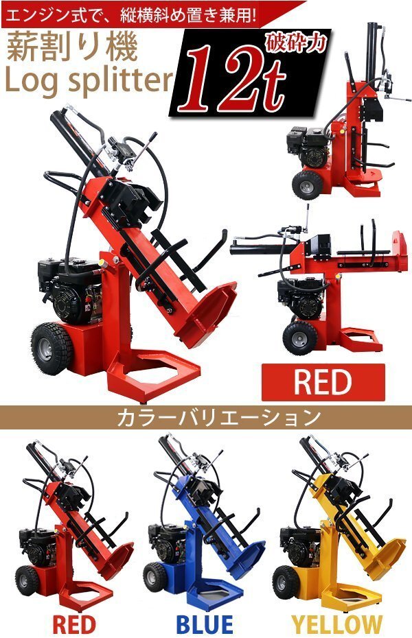 - 送料無料 薪割り機 薪割機 ログスプリッター エンジン式 破砕力 12t 約7.0馬力 横割り 縦割り 斜め割り カッター まきわり レッド