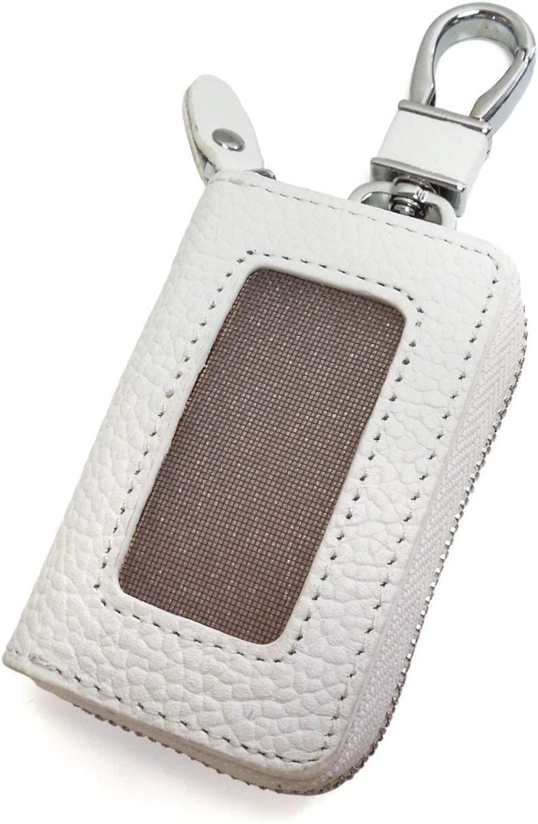 - キーケース 本革 窓付き ホワイト スマートキー キーカバー スマートキーケース 汎用 メッシュ