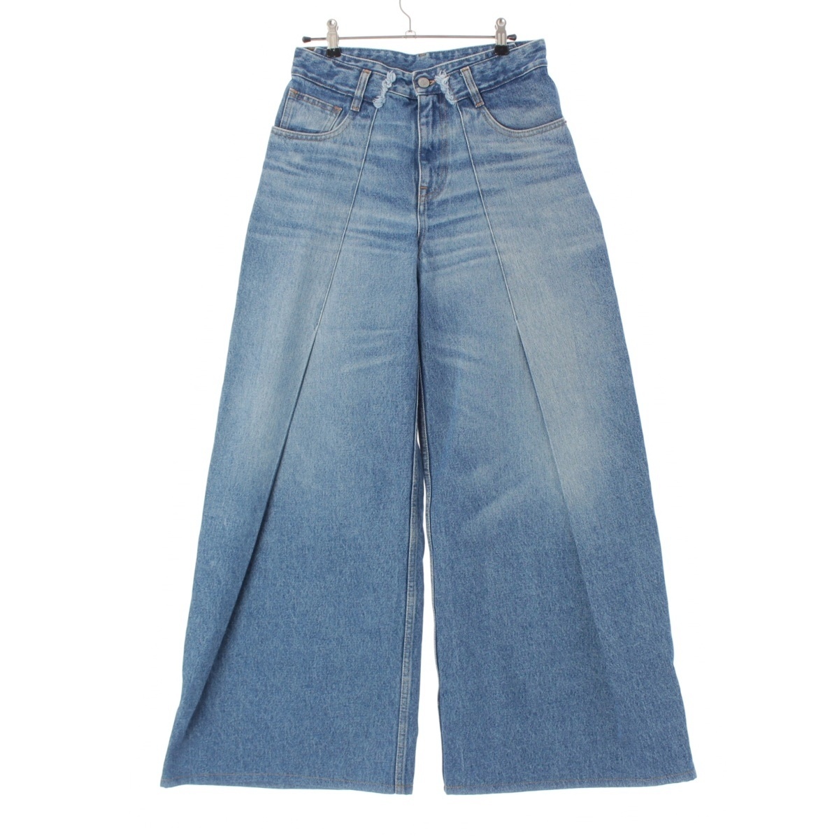 > エムエムシックス 21年 コットン ピンタック フレア ワイド デニムパンツ S52LA0143 インディゴ 38【中古】