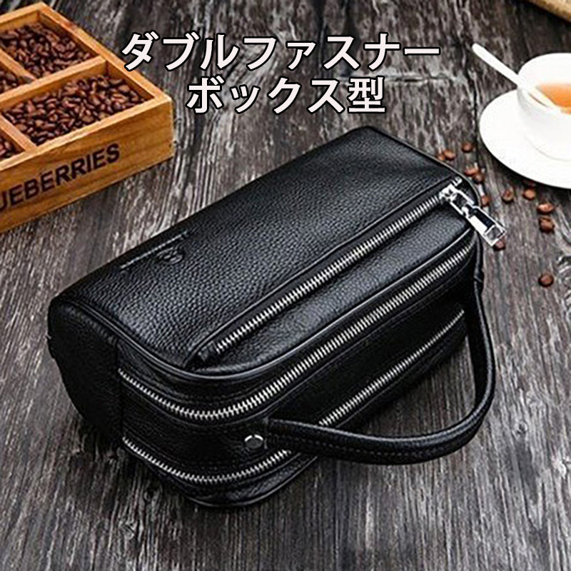 > セカンドバッグ メンズ セカンドバック クラッチバッグ 本革 レザー ボックス 型長財布 ダブルファスナー 20代 30代 40代 vvb90829