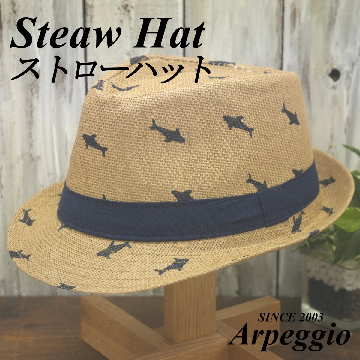 - 全国一律送料450円 ストローハット Fish Print 魚柄 フェドラハット ブラウン 男女OK ハット パナマ ボルサリーノ 麦わら 中折れ