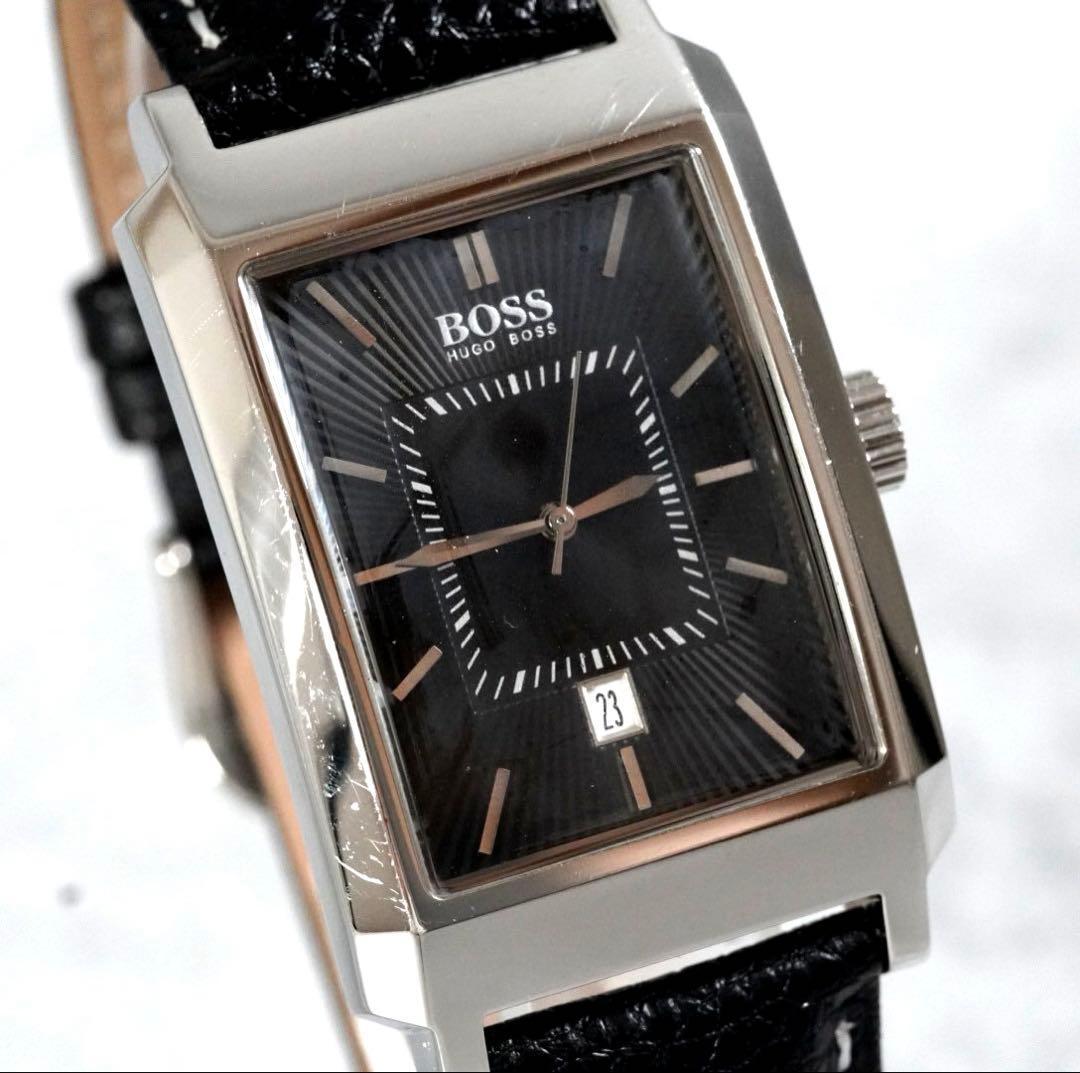 - 1円 スタート HUGO BOSS ヒューゴボス レクタンギュラー デイト メンズ 腕時計 クォーツ quartz men's wacth 1スタ ブラック