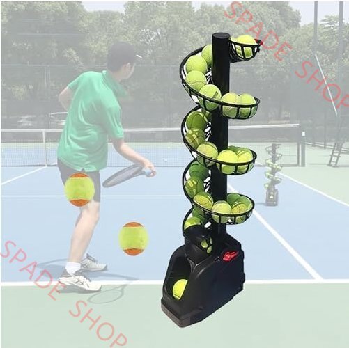 > テニスボールマシンテニス練習器具調整可能なテニスボールトッサー自動回転サービングの頻度と強度を調整可能、約30個のボールを保持可能