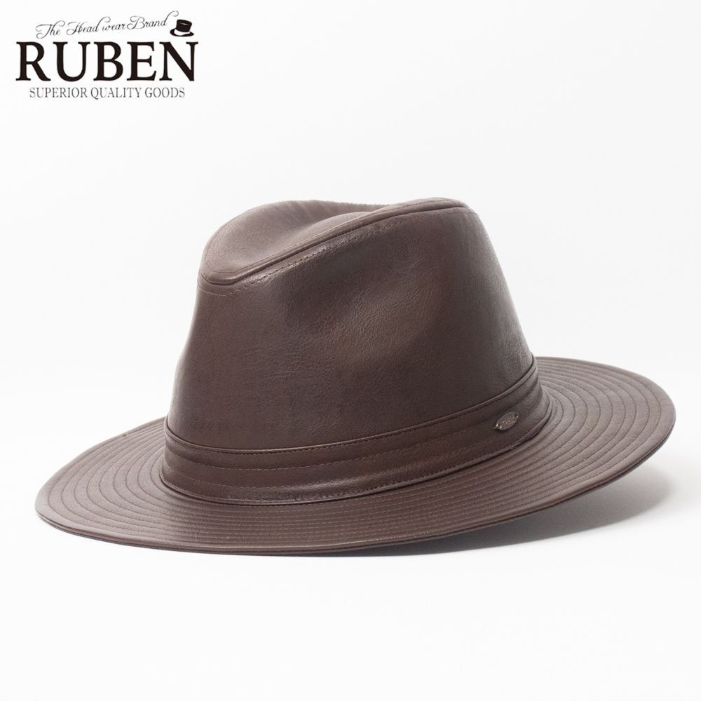 - 新品 RUBEN ロングブリム エコレザー 中折れハット ダークブラウン