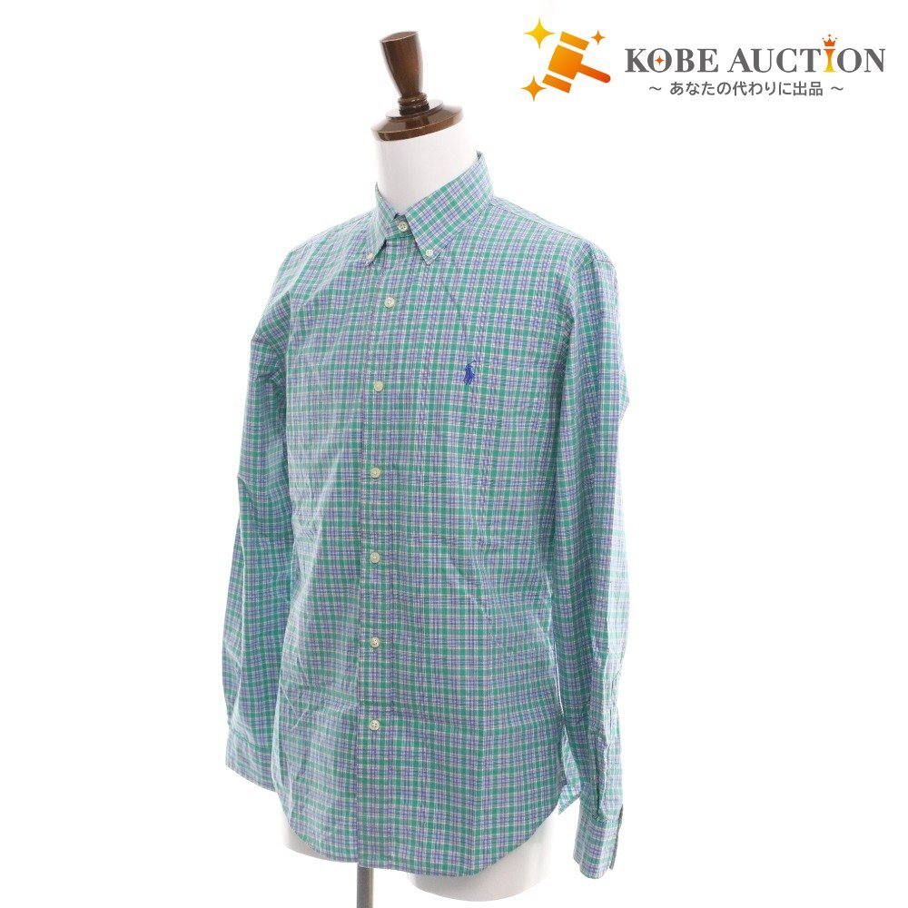 - ■ ラルフローレン シャツ 長袖 トップス チェック ロゴ刺繍 ボタンダウン スリムフィット メンズ M/M グリーン系