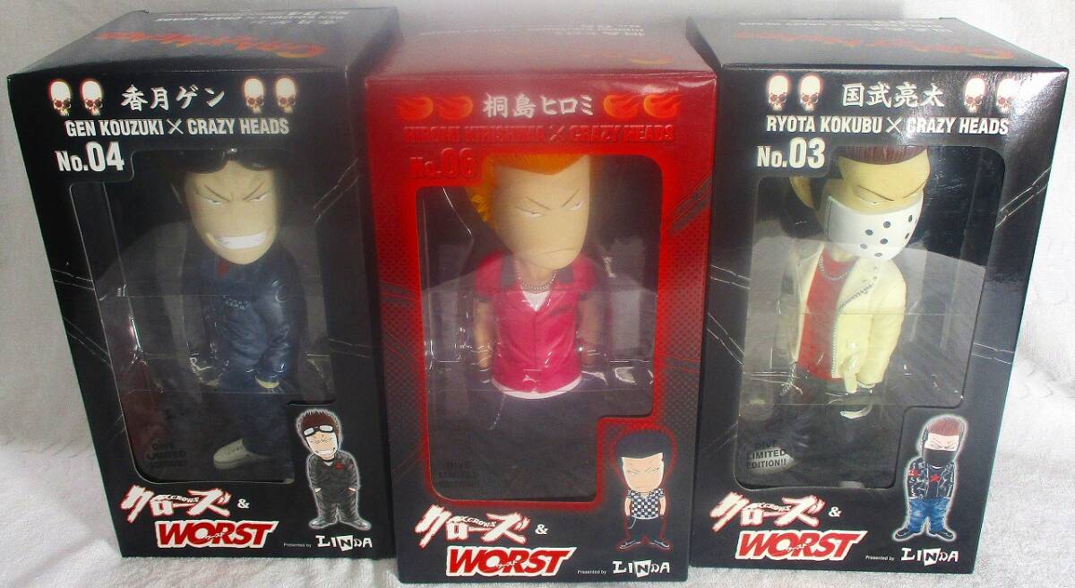 - 在庫処分! 「香月ゲン」、「桐島ヒロミ」、「国武亮太」 クローズ・クレージヘッドの3体セット 未開封品