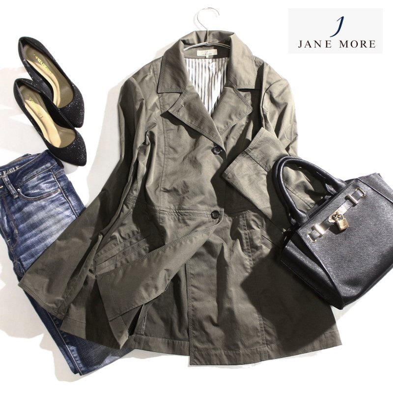 > 美品 JANE MORE ジェーンモア 株) オンワード樫山 ミリタリー コート カーキ系 L 11号 グリーン 緑 ミセス アウター 羽織 ジャケット 上着
