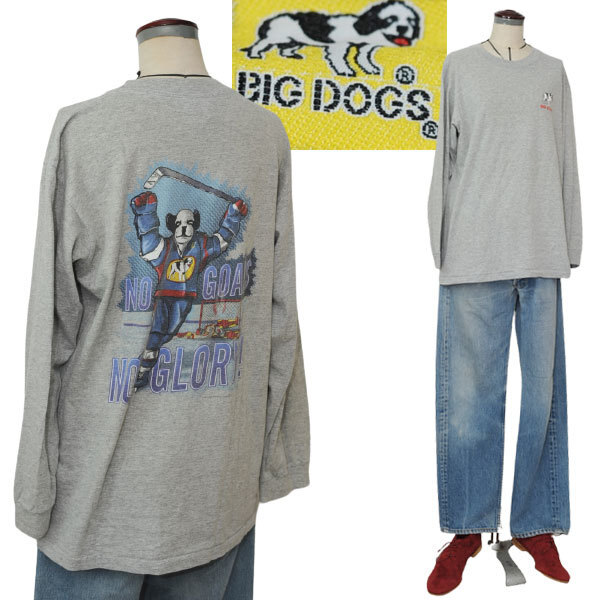 > ★【隠れた名作 USA製 90s位 ビンテージ】1991年コピーライト有 Big Dogs ビッグドッグ 両面プリント ロンTシャツ グレー系 サイズM