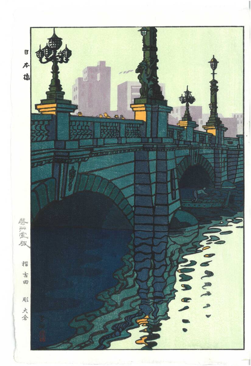 - 真作保証 笠松紫浪 (1898~1991) 木版画 日本橋 新版画 初版 1956 一流の摺師の技をご堪能下さい!!