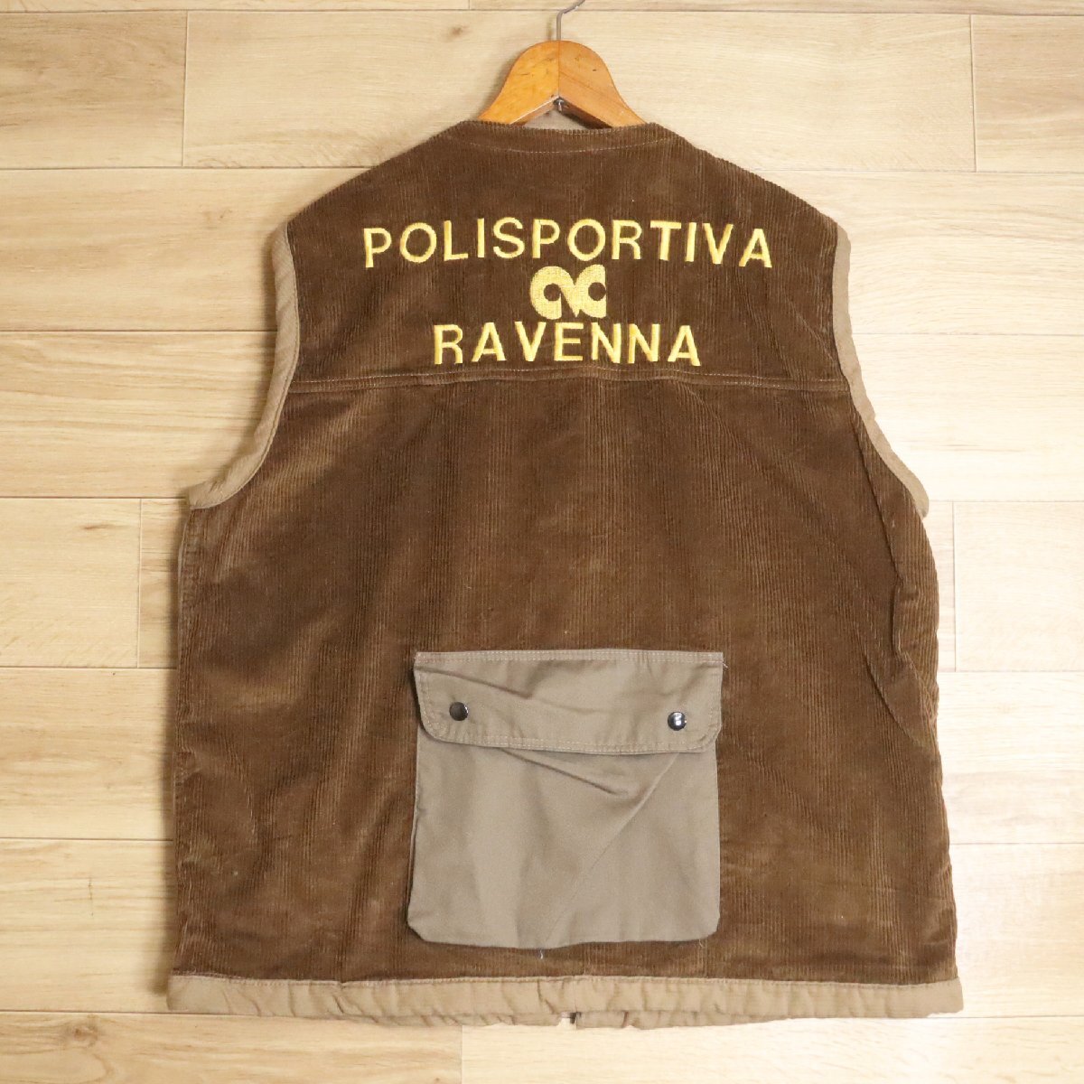 > E3O/R3.31-4 CATCH THE LION コーデュロイ切り替え コの字 ハンティングベスト チョッキ ジレ アウトドア バック刺繍 メンズ M