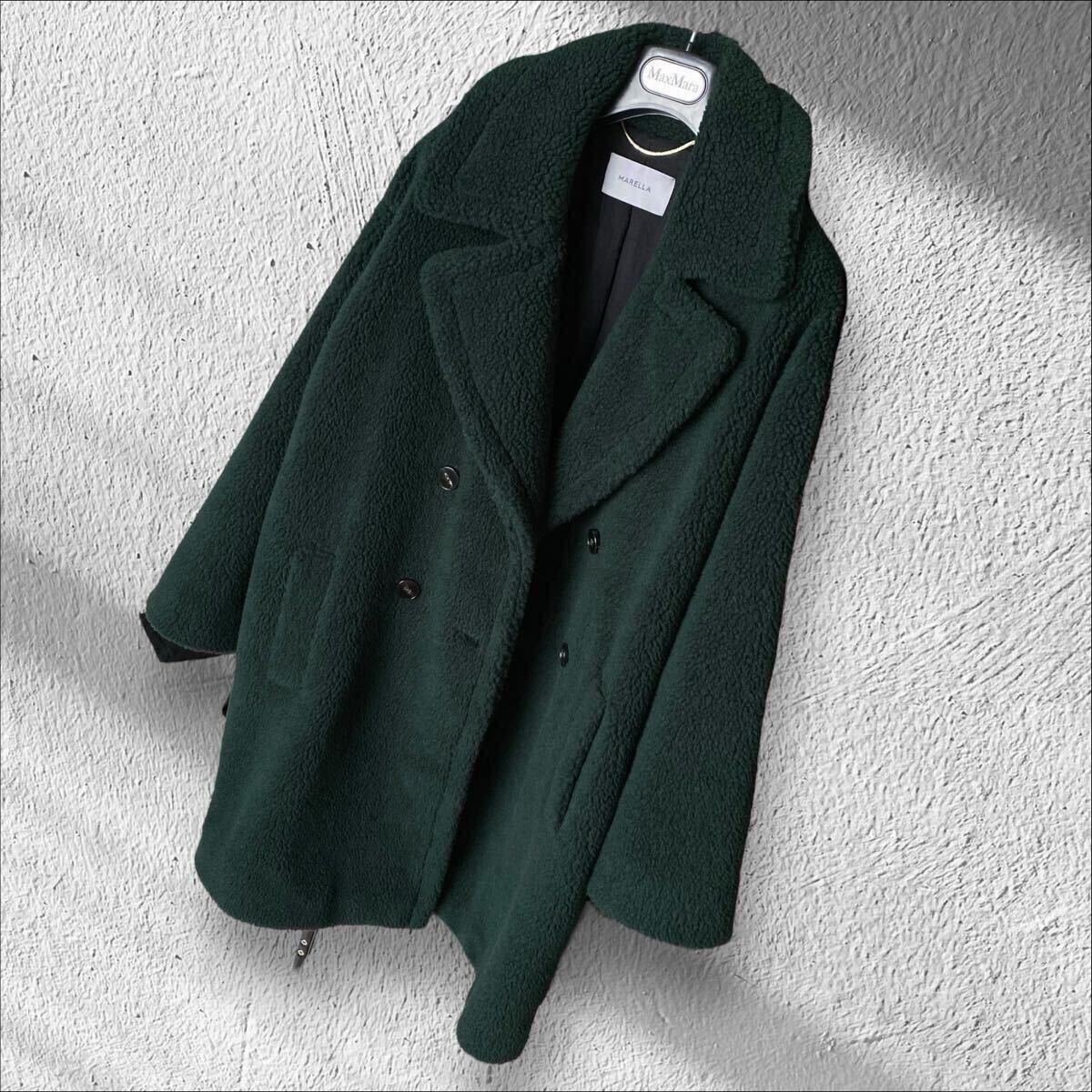 - 超高級美品近年 MaxMara オーバーサイズ テディベア ボア ふんわりコート ぬいぐるみ マックスマーラ MARELLA マレーラ 裏地ロゴ42希少深緑