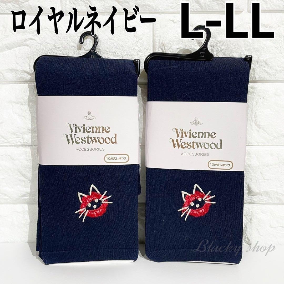 - 【2足セット】 ヴィヴィアン ウエストウッド キャット レギンス 110デニール 未使用 ネイビー L-LL 10分丈 厚手 タイツ ストッキング
