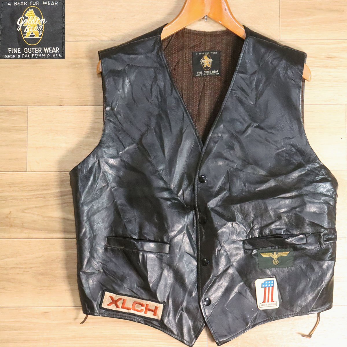 - %8K/Y5.14-1 60s ヴィンテージ USA製 Golden Bear ゴールデンベア サイドレースアップ レザーベスト 本革 ライダースベスト