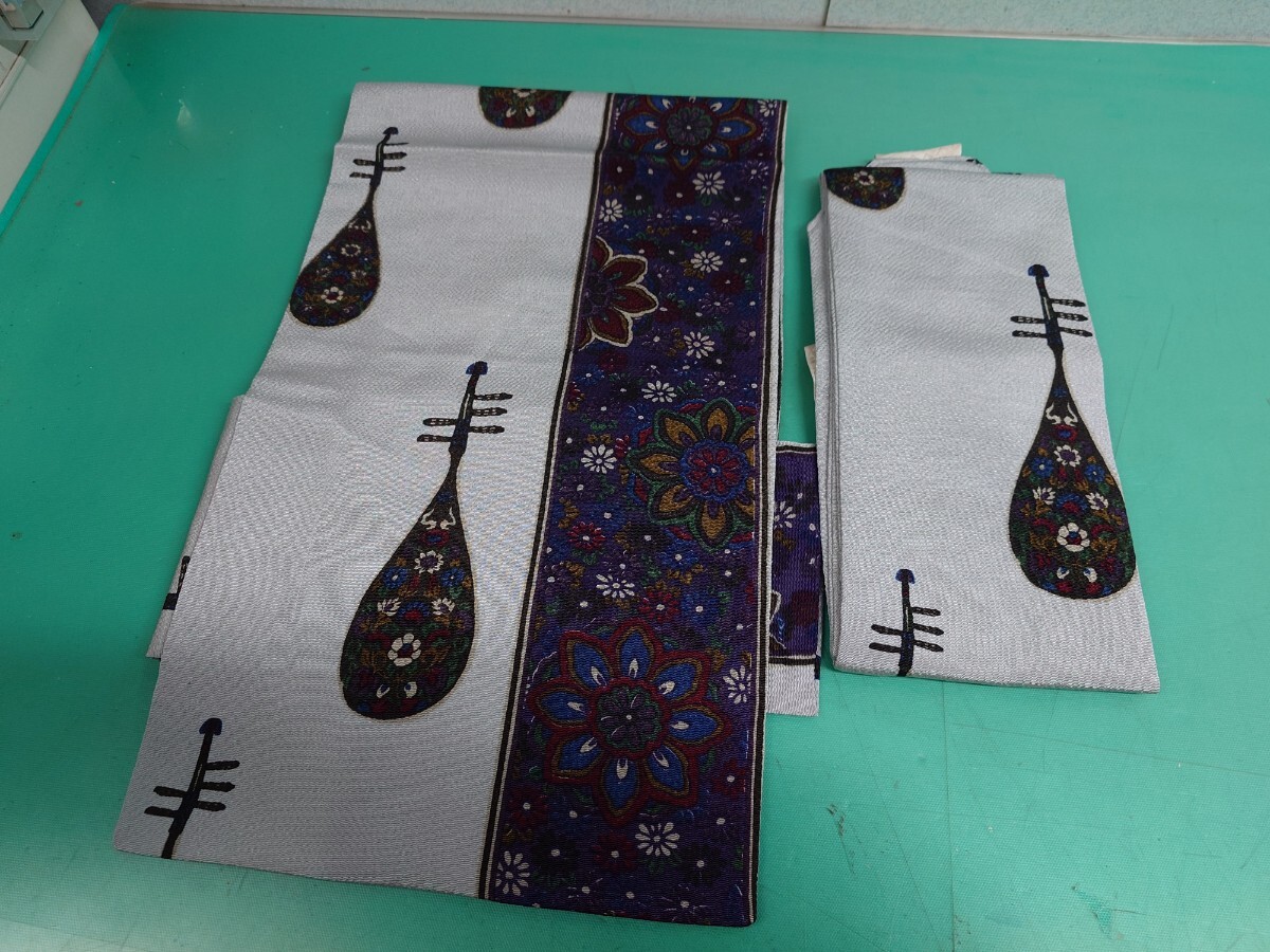 - ● 233 ちりめん 縮緬 弦楽器 琵琶 /エスニック オリエンタル 柄 可愛い 帯 訳あり品 着用しやすい 二部式加工 ④