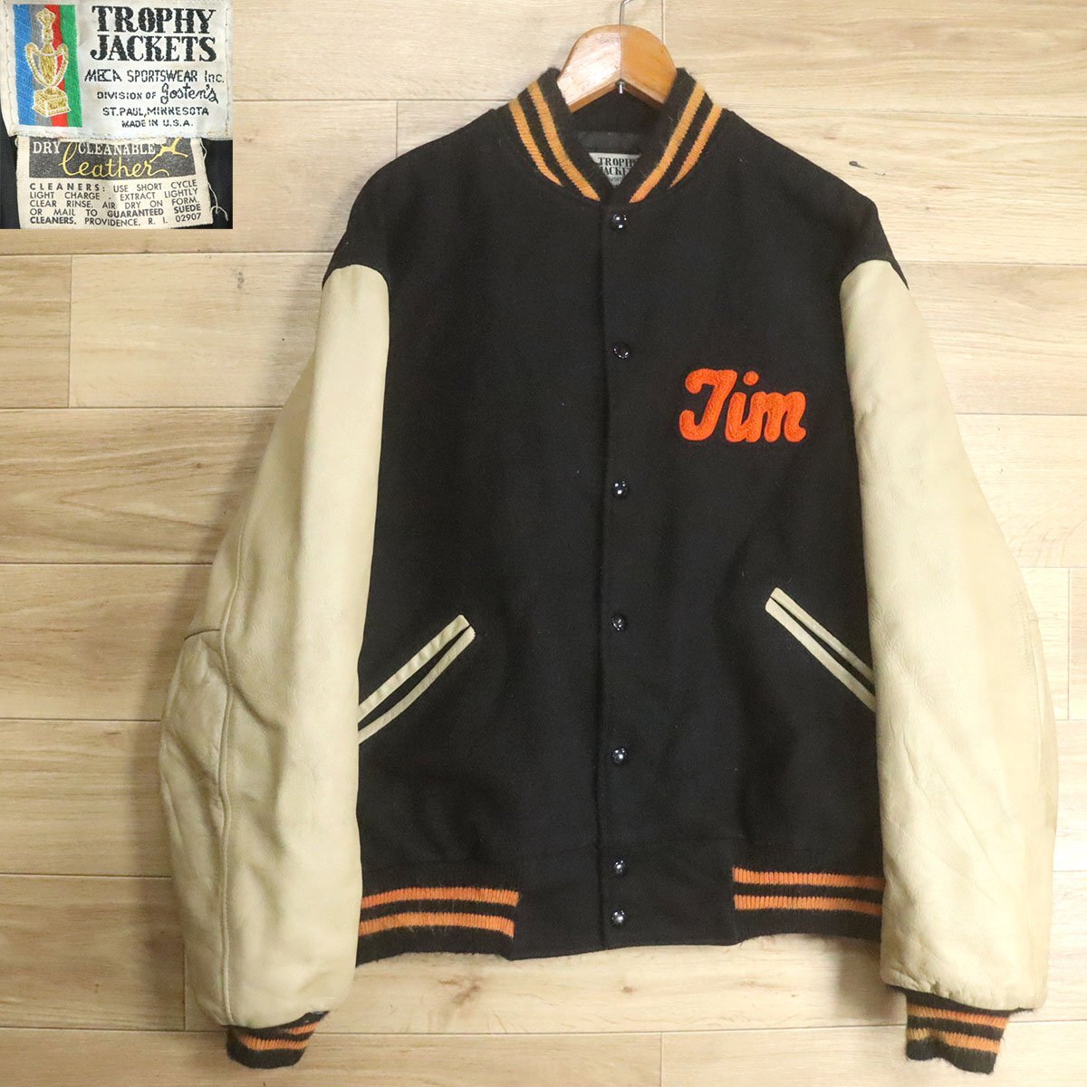 > F2S/S6.9-3 80s~ ビンテージ 米国製 TROPHY JACKETS 袖革スタジャン 本革 アワードジャケット バーシティジャケット ヴィンテージ