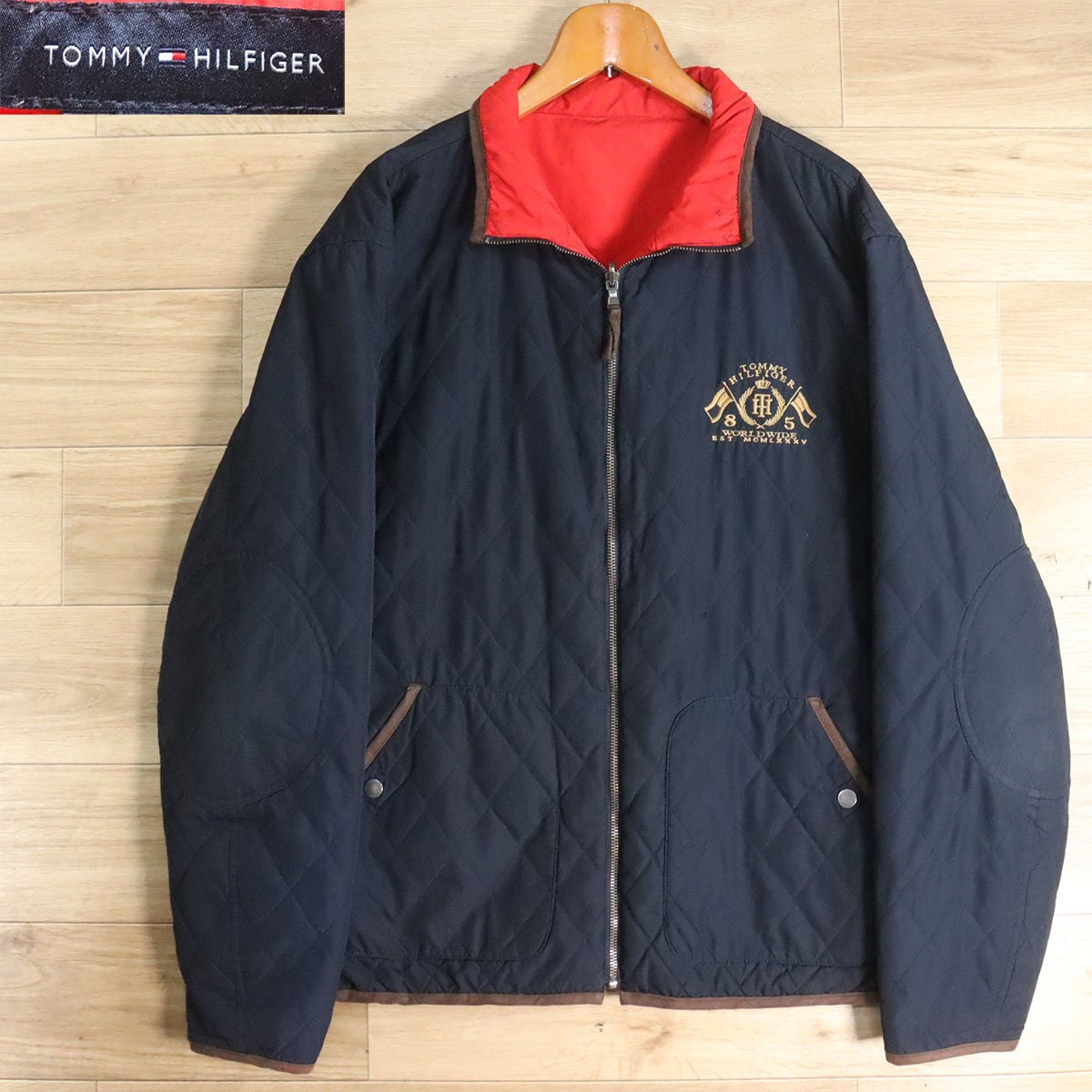 - B6S/Y4.9-7 TOMMY HILFIGER トミーヒルフィガー リバーシブル キルティングジャケット エンブレム刺繍 メンズ XL ネイビー レッド