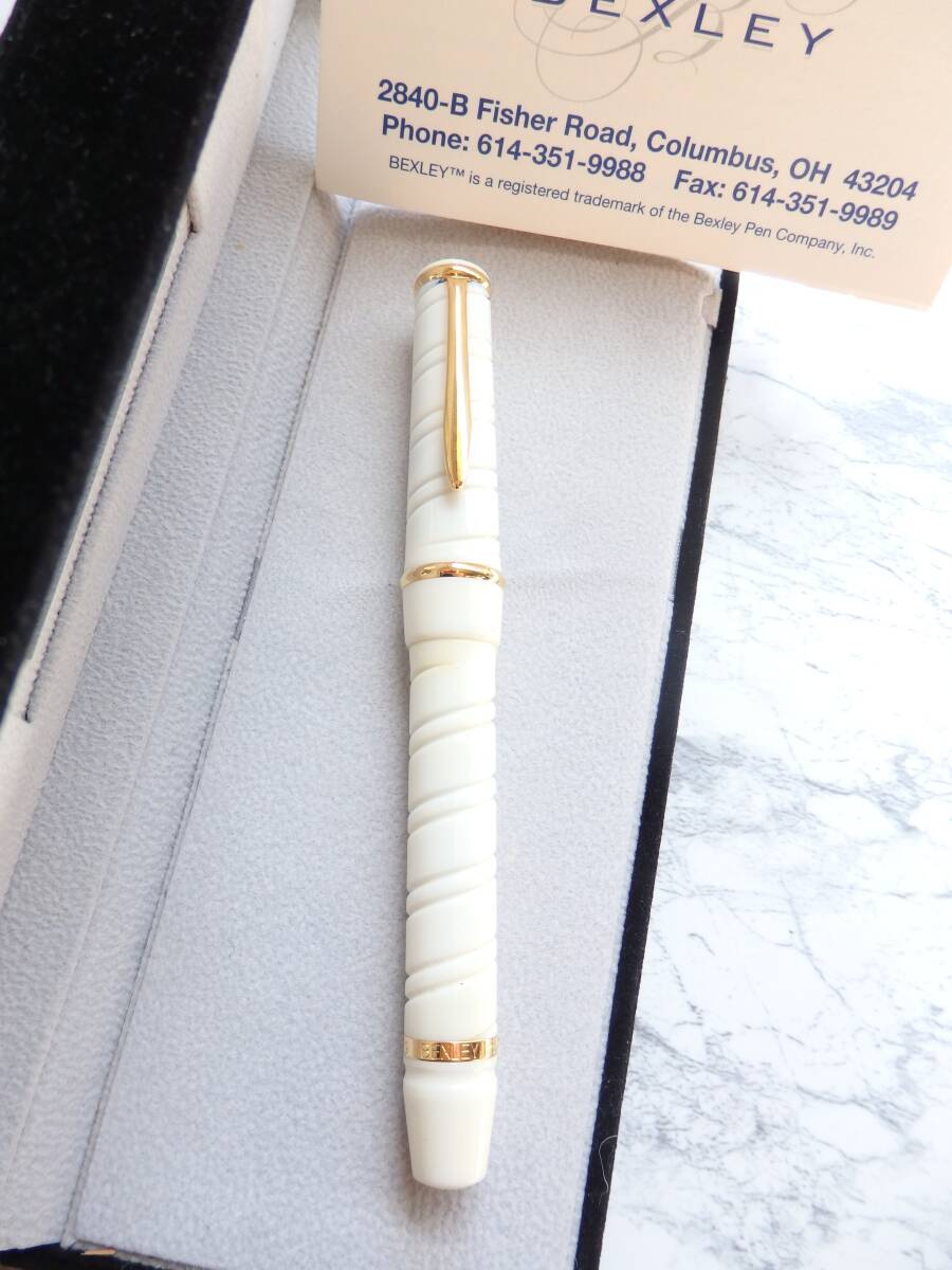 > ◆【極上品】【送料440円】 BEXLEY ベクスレイ USA made 特別限定品 ホワイトツイスト万年筆 ペン先: 14K 585ソリッドゴールド M
