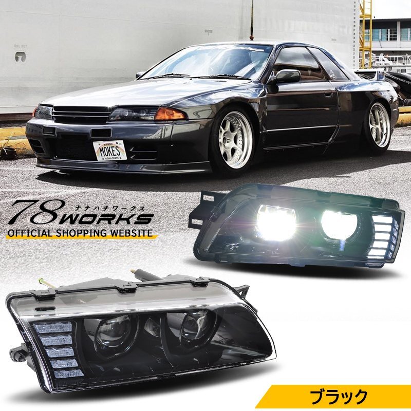 > 新品 左右セット R32 スカイライン ヘッドライト ブラック 日産純正と交換 ハロゲン HID 対応 社外 右側 左側 BNR32 HCR32 GTR 78WORKS