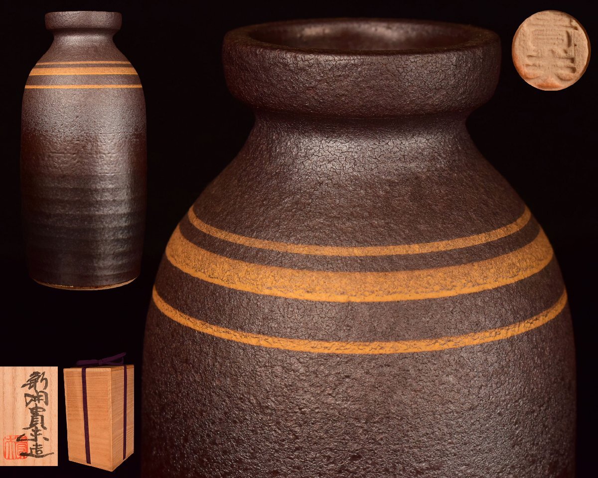 U331 【泉美】新開寛山監修 新開高夫造「錦栄」花瓶 花入 花生 花器 共箱入拍卖