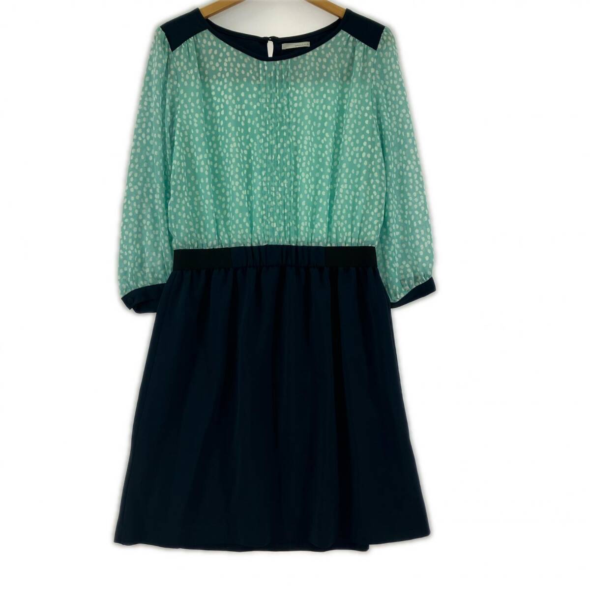 - OPAQUE.CLIP オペーク ドット クリップ 柄 シフォン切替 ワンピース size40/L/ミントグリーン×ネイビー ゆうパケットOK