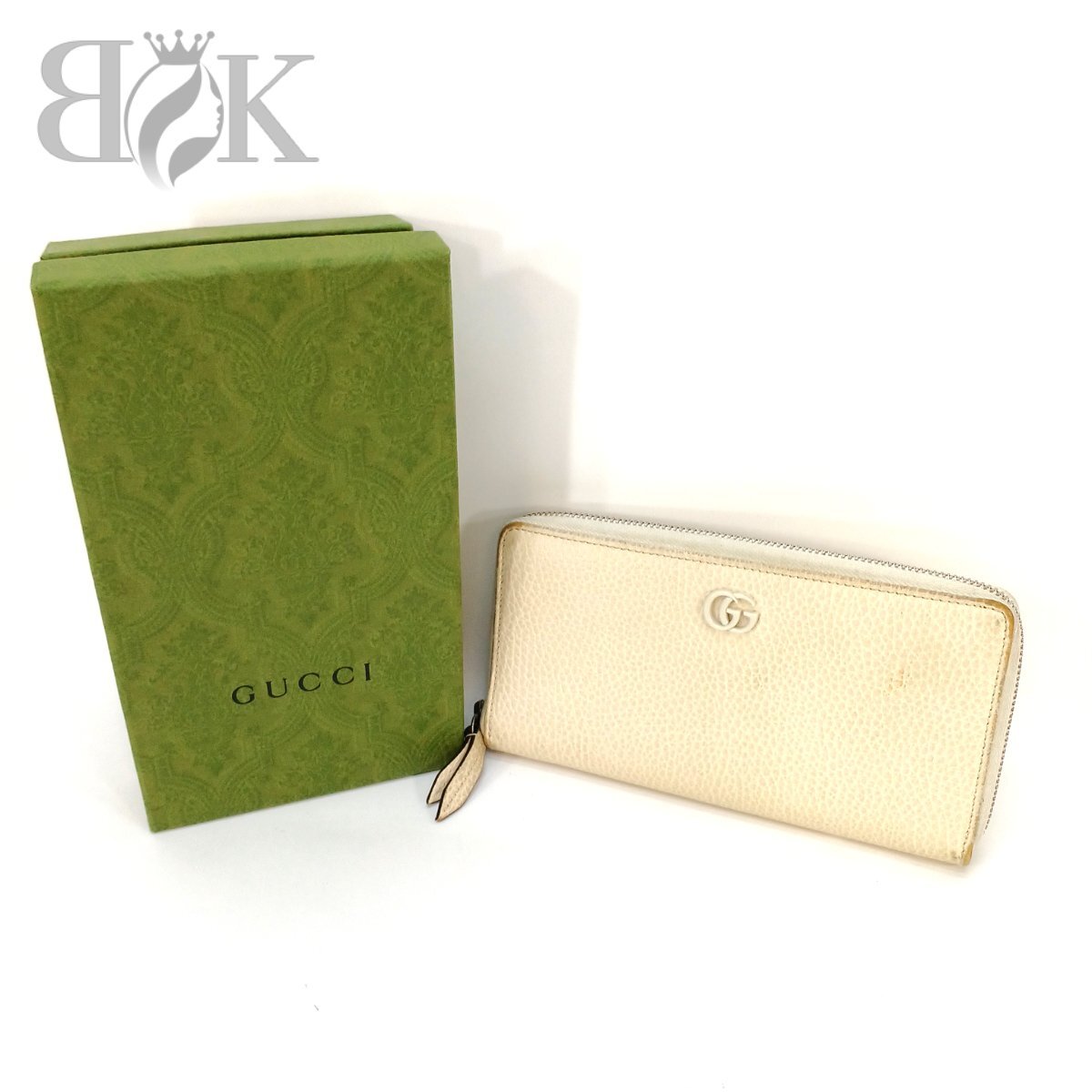 > グッチ 456117 GGマーモント ラウンドジップ 長財布 レディース ホワイト系 外箱付 札入れ 小銭入れ ロングウォレット GUCCI 中古 ★