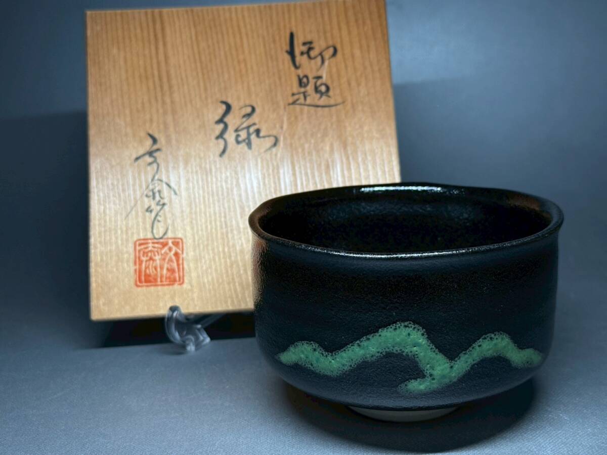 - 瀬戸 杉浦文泰造 御題 緑 黒茶碗 茶道具 煎茶道具 骨董 置物 飾物 日本伝統工芸品 芸術 古美術 時代物 在銘 落款 売切 長崎買取88