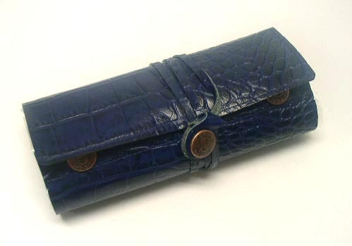 《< 新品 牛革製クロコ柄(ネイビー) ロールミーアップ エプロン 手巻きシャグ用(ポーチ)幅15cmシャグ対応 (ヒモ留め)日本製 >》
