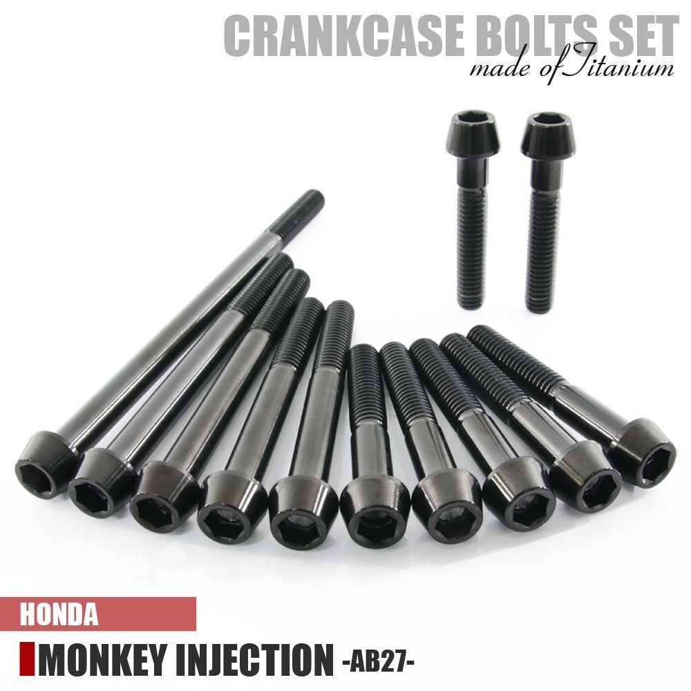 - チタンボルト ホンダ モンキー インジェクション車専用 クランクケース エンジンカバー ボルト セット 12本 ブラック 軽量化 カスタム