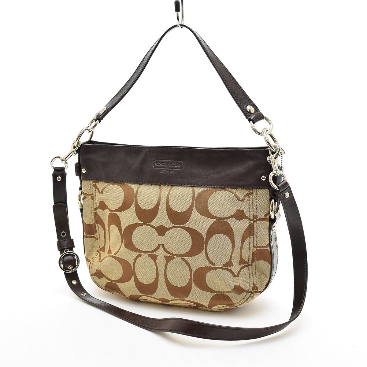 > □568578 COACH コーチ 2WAYショルダーバッグ シグネチャーキャンバス レディース ベージュ ブラウン