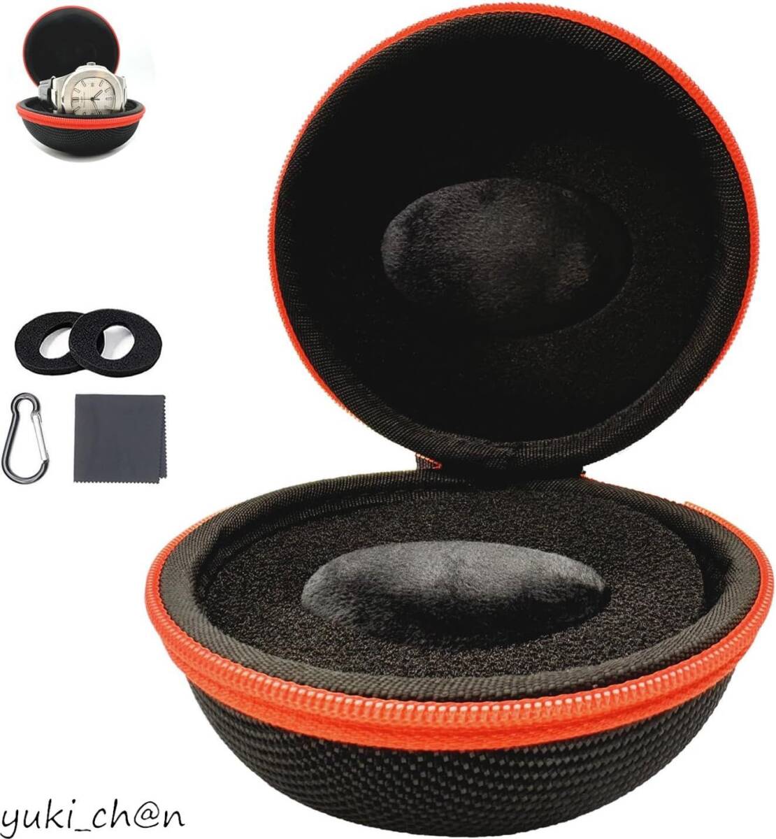 - 腕時計収納ケース 防水 耐衝撃 ドーナツ型 EVA素材 軽量設計 ブラック×レッド 50mm対応 旅行 出張 持ち運び便利