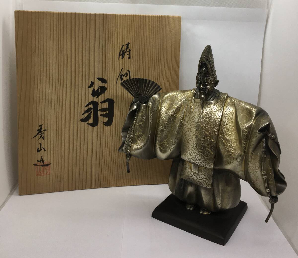 - 鋳銅 扇 秀山造 金属工芸品 インテリア 置物 共箱
