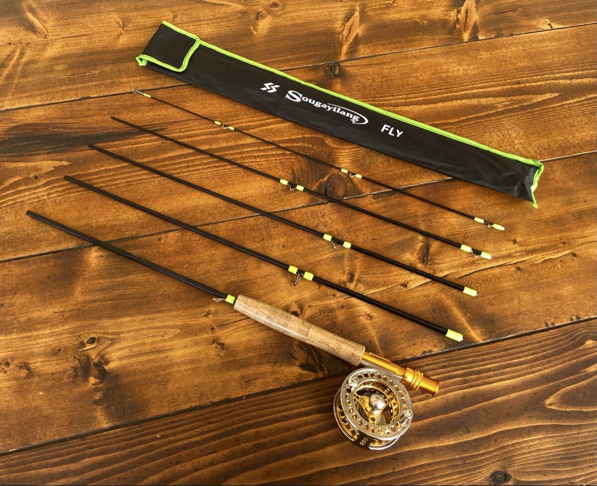 - フライセット 超軽量 カーボンロッド フライロッド フライリール レイクトラウト フライフィッシング 9ft 270cm